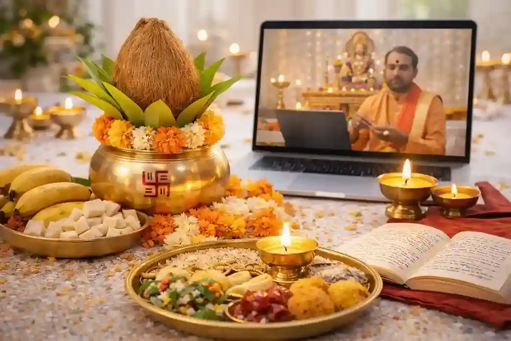 The puja can conducted via Google Meet, Zoom, WhatsApp video call, or any other system that is amenable for the service delivery. Stable internet connection is recommended for a smooth experience.